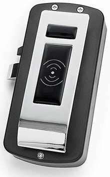 Накладной замок со встроенным контроллером (24 польз.) и считывателем карт EM-Marine, HID, Temic (дальность 2-4см), питание 4х1,5В батарея АА, пять режимов работы. Звуковая/световая индикация работы, цвет серебро, 110х37х13 мм.