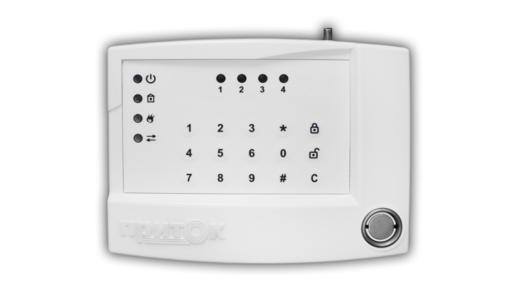 4 программируемых шлейфа (ОС, ПС, ТС), встроенная клавиатура, считыватель ТМ.