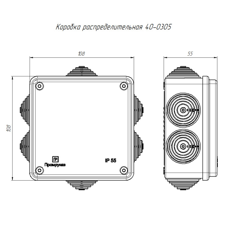 40-0305 Коробка распределительная для о/п безгалогенная (HF) атмосферостойкая 100х100х50 (60шт/кор) Промрукав