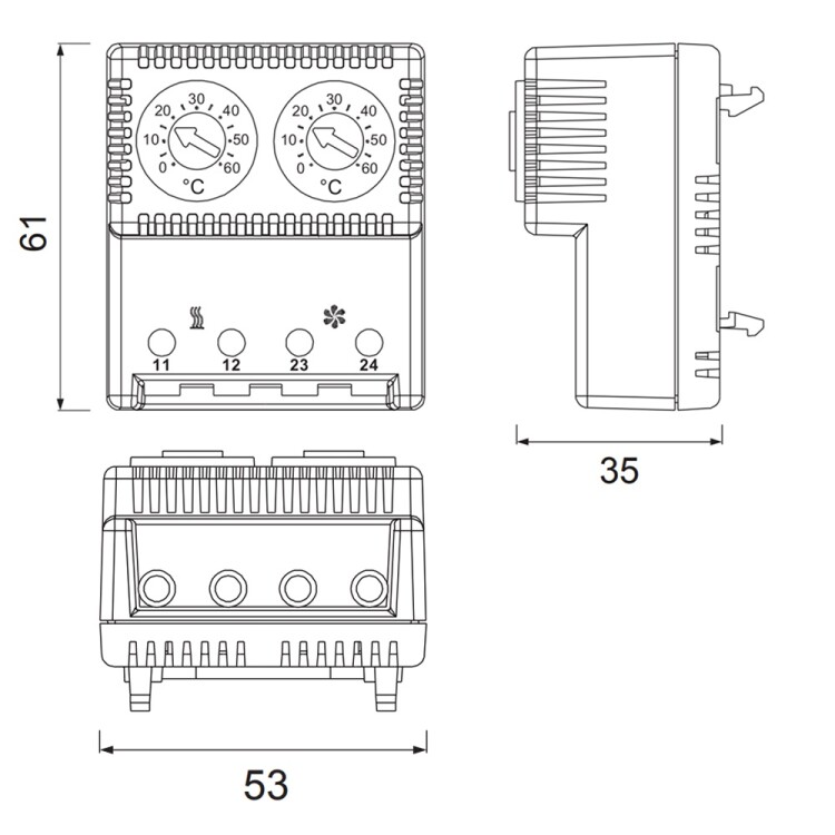 R5THRV13 Термостат сдвоенный, диапазон температур для NC контакта: 10-50°C DKC