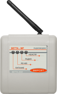 Универсальное приемопередающее устройство с модемом радиоканала. Обеспечивает радиоканальную связь между пультовым и объектовыми приборами системы «ВЕТТА-2020». В системе передачи информации ведущий радиомодем выполняет функции ретранслятора (РТР), а ведомый - функции прибора объектового оконечного (ПОО). Дальность действия со штатными антеннами на открытой местности до 1000 м., с направленными антеннами (в комплект поставки не входят) - до 5000м. Питание от внешнего ИП 12 В.