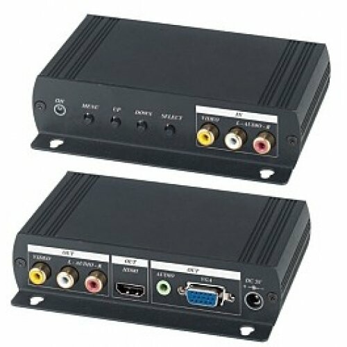 AD001HH Преобразователь аудио и композитного видеосигнала в VGA и HDMI. Входы - композитный видео и стереоаудио. Выходы - композитный видео и стереоаудио, VGA, HDMI. Разрешение VGA -до 1920x1080, HDMI -до 1080p. OSD меню. БП 220/5В, 1А(DC) в комплекте. Размеры (ШxВxГ): 140х32х97мм. Рабочая температура -40...+55°C.