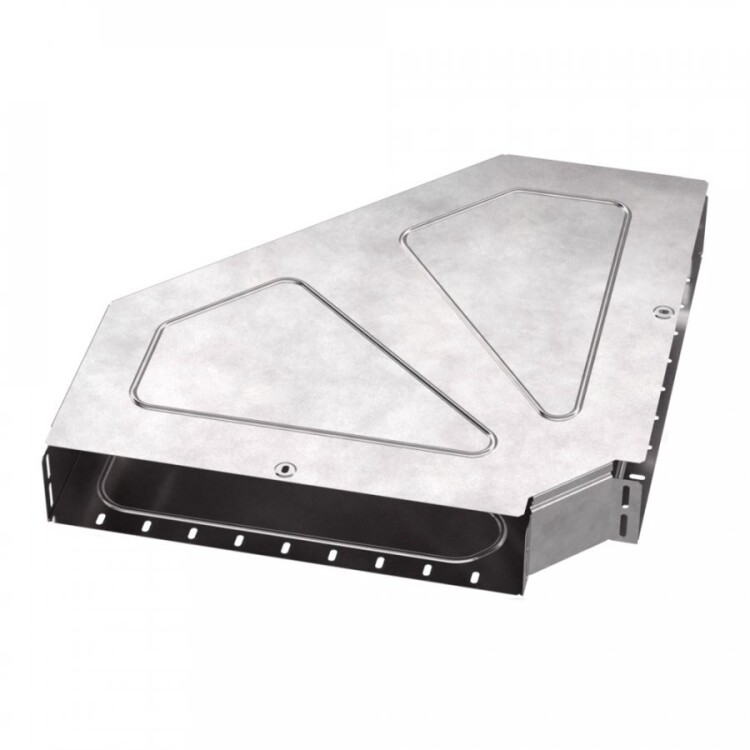 Угол горизонтальный 90 градусов предназначен для поворота кабельных лотков серии «Стандарт» на прямой угол в горизонтальной плоскости. Изделие подходит для монтажа как на перфорированные, так и на глухие лотки шириной 500 мм и высотой 100 мм, обеспечивая надежное и аккуратное соединение трасс. Крышка в комплекте защищает кабели и облегчает доступ при обслуживании.