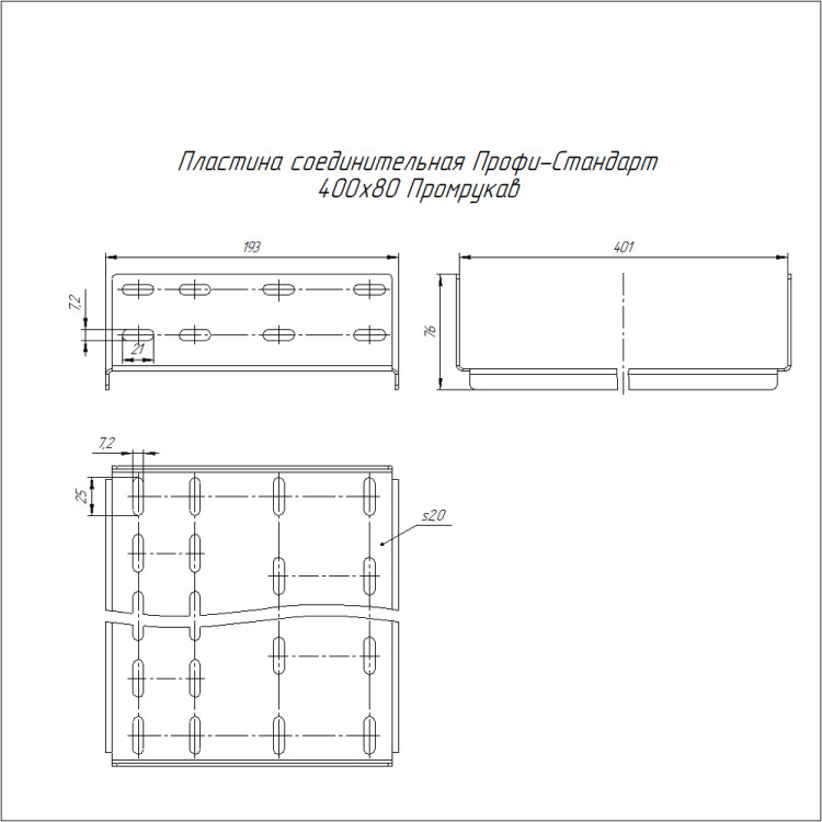 PR16.21593 Пластина соединительная Профи-Стандарт INOX (AISI 304) 400х80 (2,0 мм) Промрукав