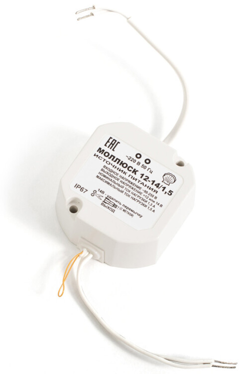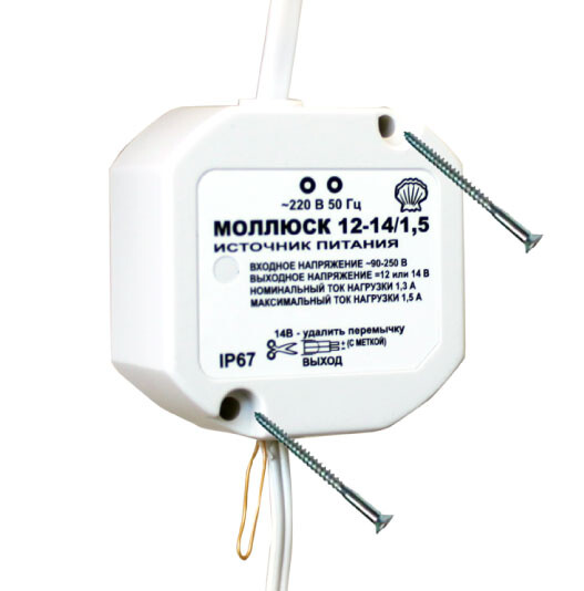 12В или 14В, 1,5А. Расширенный сетевой диапазон 90-250В, габариты 50х50х25 мм, скругленные края ? 55мм, защита выхода от КЗ и перегрузки, прочность изоляции 3 кВ, отверстия для крепления, корпус IP67