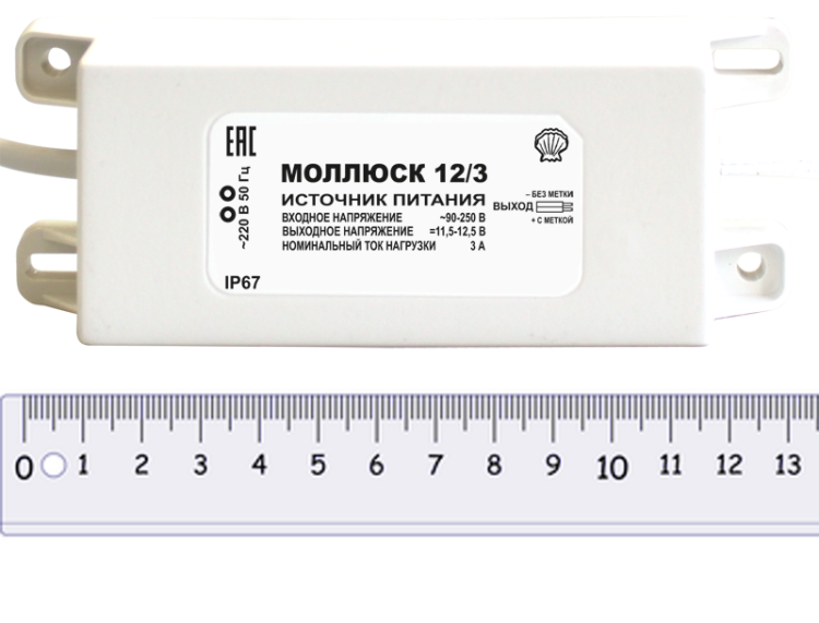 12В, 3А. Расширенный сетевой диапазон 90-250В, габариты 135х50х35 мм, защита выхода от КЗ и перегрузки, прочность изоляции 3 кВ, проушины для крепления, корпус IP67 Обновление модели: Белый корпус, светодиодная индикация
