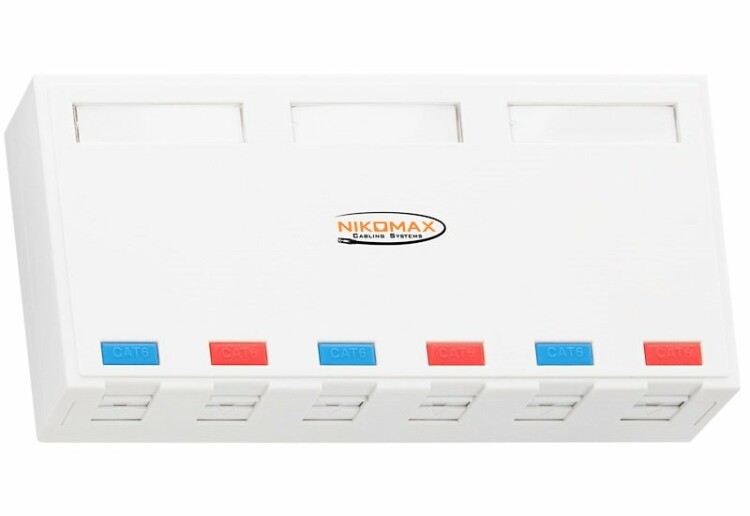 Корпус настенной розетки NIKOMAX, 6 портов, под модули-вставки типа Keystone, со шторками, белый