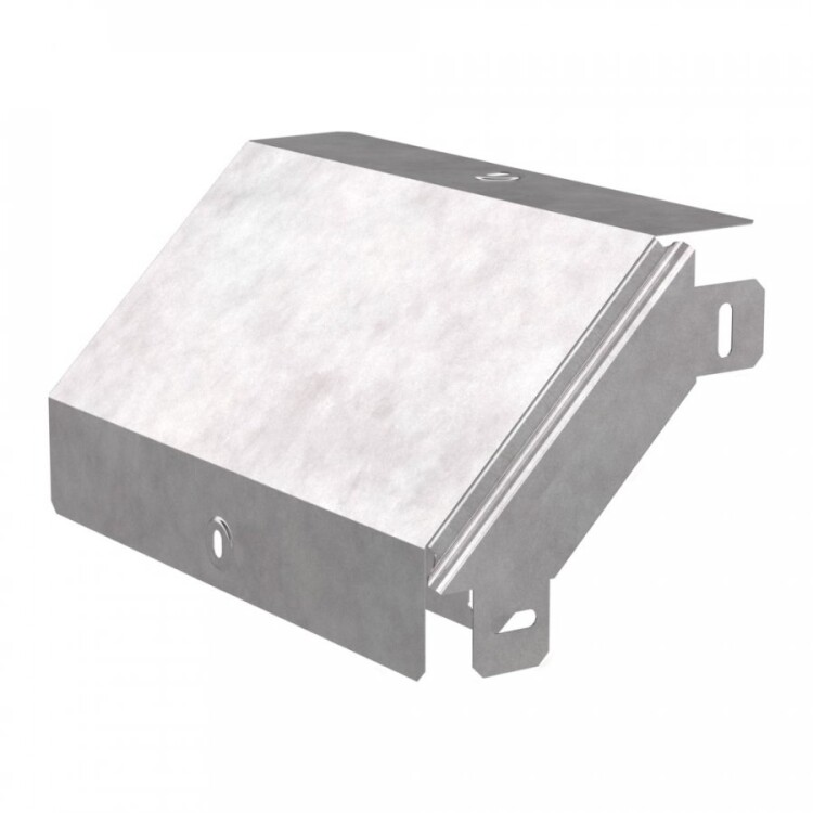 Это внешний вертикальный угол на 90 градусов с крышкой для кабельных лотков серии «Стандарт» размером 300х50 мм. Он предназначен для аккуратного и надежного спуска кабельных трасс под прямым углом, подходит как для перфорированных, так и для цельных лотков. Изготовлен из оцинкованной стали с цинковым покрытием толщиной 19-23 мкм, что обеспечивает защиту от коррозии и долговечность конструкции.