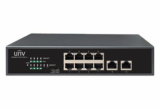 8 сетевых PoE портов?1000Mbps(RJ45)+2?1000Mbps порта(RJ45), IEEE802.3, IEEE802.3u, IEEE802.3az, IEEE802.3x, IEEE802.3af, IEEE802.3at, коммутационная способность 20Gbps, скорость пересылки пакетов 14.88Mpps, размер буфера 2M bit, MAC 2K, бюджет мощности: 120Вт., максимальная мощность на порт: 30Вт., встроенный вентилятор, встроенный блок питания AC: 100-240V, 50/60Hz