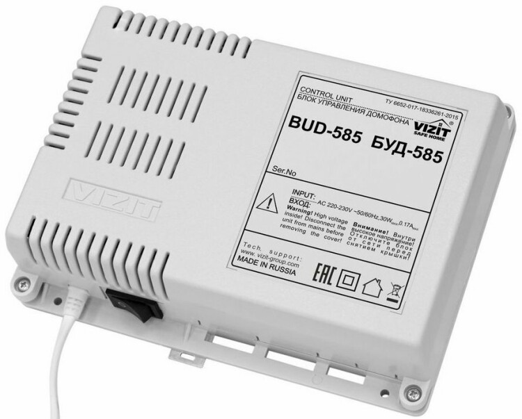 Блок управления и питания периметрового домофона (серии 500). Предназначен для работы совместно с двумя блоками вызова БВД-532FCB и блоками коммутации БК-501 (до 24шт). Возможность удаленного управления по локальной сети RS-485. Емкость до 4800 абонентов. Контроллер ключей RF (до 16 000 шт.).Напряжение питания (190-240VAC).Рекомендуется устанавливать в монтажные боксы VIZIT.