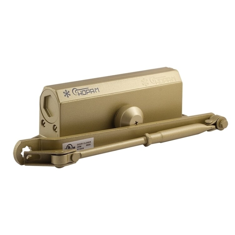 Универсальный дверной доводчик уличный морозостойкий, предназначен для дверей левого и правого открывания. Устанавливается на тяжёлые входные двери весом от 80 до 120 кг. Данная модель разработана с учетом особенностей эксплуатации в российских условиях. Диапазон рабочих температур от -45° до +60°C.