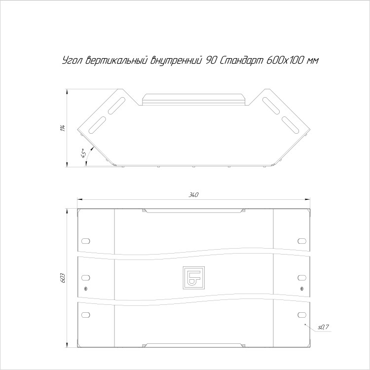 | Тип изделия | Угол внутренний вертикальный 90° для кабельных лотков |