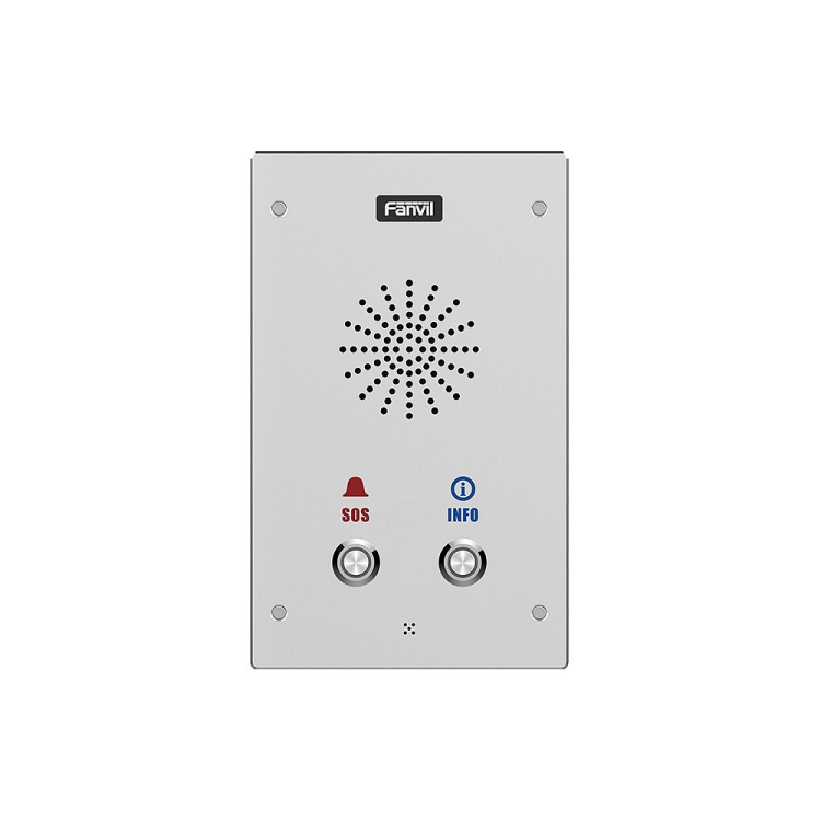 Fanvil i16S-02P - аудиодомофон с поддержкой SIP и PoE в новом элегантном дизайне с двумя кнопками. Изготовлен из высокопрочного алюминиевого сплава и имеет неразборную конструкцию, что позволяет полностью защитить устройство от воздействия влаги и пыли (IP65) и от механических воздействий (IK10). Устойчив к экстремальным температурам от -30 до +70 ?. Устройство поддерживает технологию шумоподавления: во время звонка интерком эффективно справляется с фоновым шумом, передавая голос в HD-качестве. Дистанционный доступ к интерфейсу облегчает работу системного администратора при настройке сети. Поддержка двух SIP-линий позволяет с помощью одного домофона обеспечивать контроль доступа сразу в две организации в одном здании (или на одном этаже). Устройство совместимо с большинством популярных IP-АТС и коммуникационных платформ.