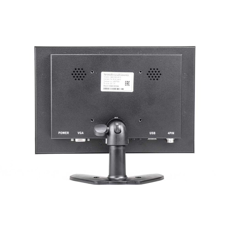 Автомобильный монитор диагональю 10 дюймов в металлическом корпусе, разрешение 1280х800, угол обзора 170°, тип матрицы IPS, видеовход авиационный/RCA/VGA/HDMI, аудиовход авиационный/RCA/HDMI.