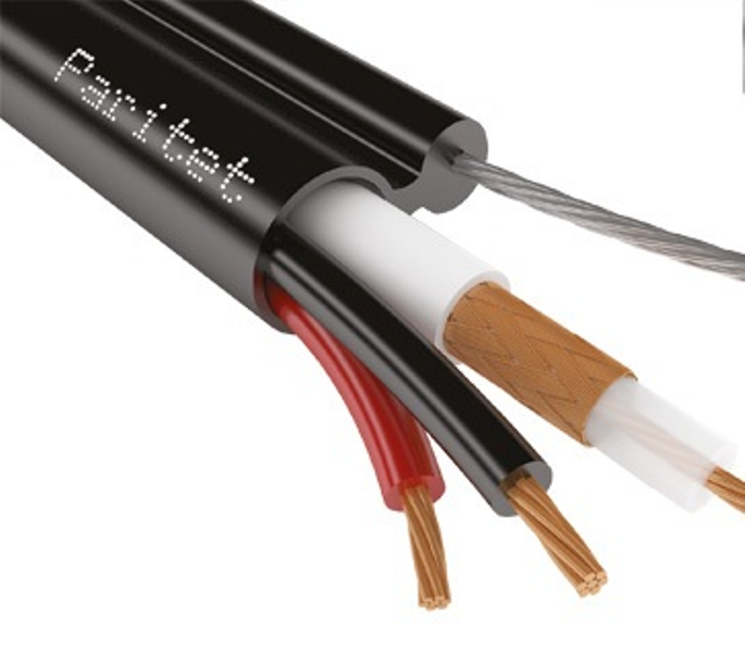 Комбинированный кабель КВК-Пт-2 2х0,75 для систем аналогового видеонаблюдения имеет многопроволочный радиочастотный элемент РК 75-2-13М, экран (оплётка медными проволоками плотностью не менее 90%) и две жилы питания сечением 0,75 мм.кв. Предназначен для внешней стационарной подвесной прокладки.