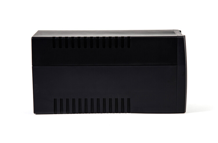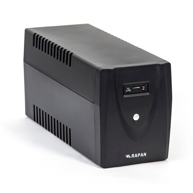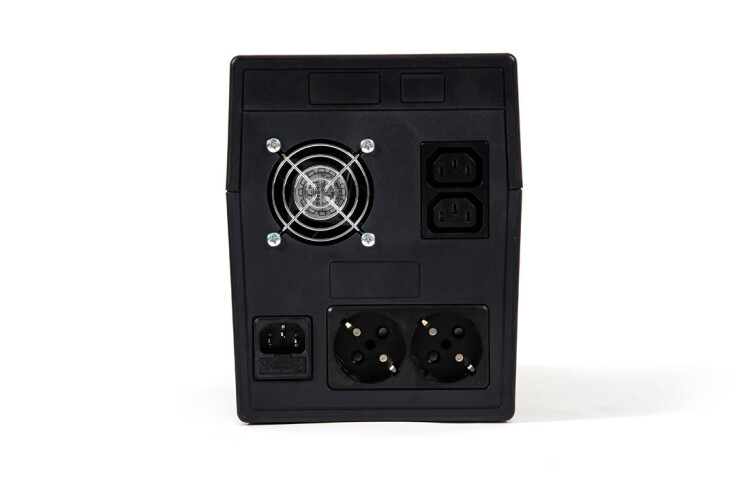 220В, 2000 ВА, (1200 Вт), встроенный АКБ 7Ач, 2 шт., время резерва 1,5 мин., холодный старт, модифицированный синус, световая и звуковая индикация режимов работы. Встроенный стабилизатор (диапазон сети 170-270В), защита от всплесков напряжения, защита от перегрузки. 4 выходных разъема: 2 шт. IEC 320 C13 (компьютерный), 2 шт. CEE 7/4 (розетка с заземлением)