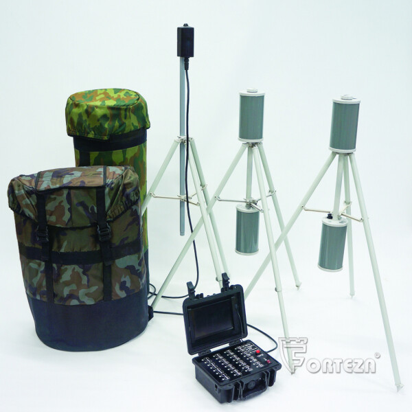 Комплекс радиолучевой быстроразвертываемый, электропитание от встроенных литиевых аккумуляторов. Не требует юстировки и настройки порогов. Работоспособность на неподготовленной местности. Время автономной работы при +20 °С - 90 суток. Предназначен для быстрой организации временных протяжённых рубежей охраны до 1600м (32 участка по 50м), различной конфигурации с регистрацией места нарушения рубежа. Под заказ поставляется любое количество участков.