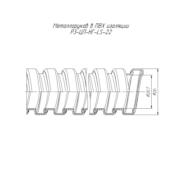 PR04.01101 Металлорукав в ПВХ изоляции Р3-ЦП-НГ-LS-22 с/з (50м/уп) Промрукав