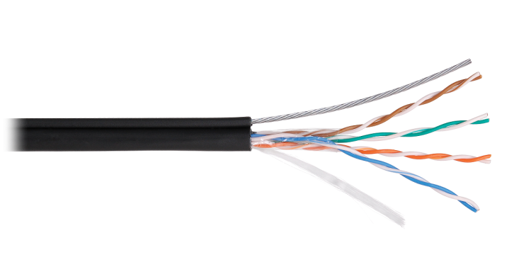 EC-UU004-5E-PE-SW-BK Кабель с тросом U/UTP 4 пары, Кат.5e (Класс D), BC (чистая медь), внешний, черный, 305м NETLAN
