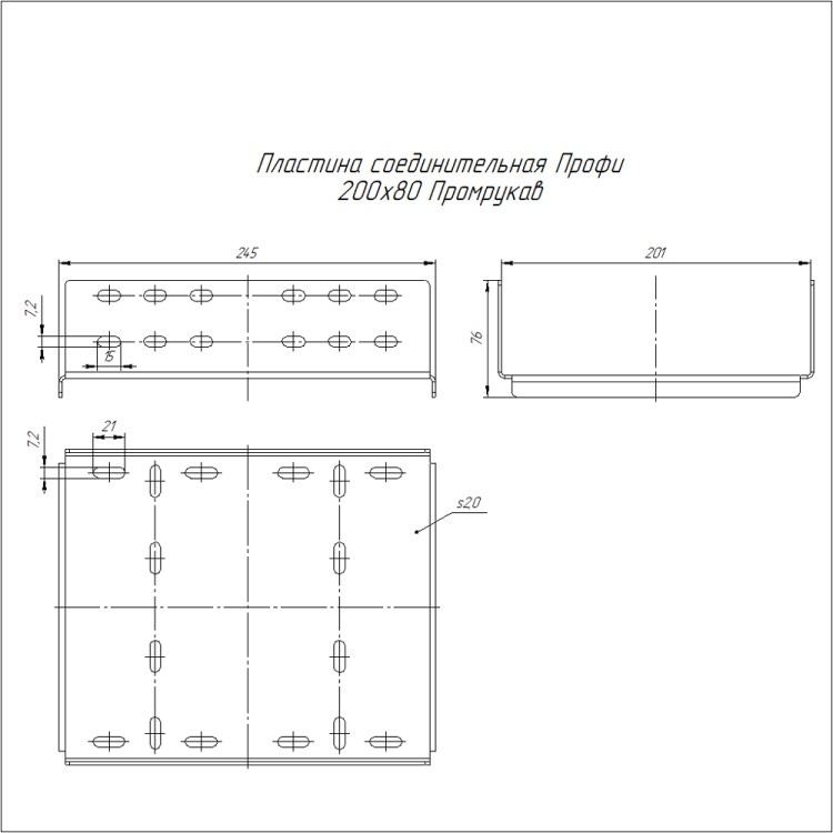 Соединительные пластины Профи предназначены для скрепления (совмещения) двух отрезков металлических лотков соответствующей серии. На основании пластины предусмотрены ребра жесткости для увеличения прочности и предотвращения поперечного прогиба в местах соединения лотков между собой. На соединительных пластинах выполнена перфорация для установки крепежа. На боковой стороне перфорация позволяет фиксировать лотки в 4-х либо в 8-ми точках крепления. Для дополнительной фиксации предусмотрена перфорация по основанию пластины.