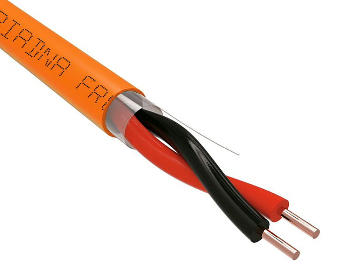 Кабель с однопроволочными токопроводящими жилами из медной проволоки, с изоляцией из керамообразующей резины, парной скрутки, в оболочке из поливинилхлоридного пластиката пониженной пожароопасности с низким дымо- и газовыделением, неэкранированныйй