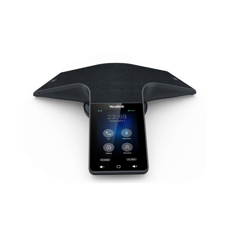Yealink CP935W-Base - это беспроводной сенсорный конференц-телефон корпоративного уровня для конференц-залов малого и среднего размера. Отличительной особенностью устройства является возможность подключения как по стандарту DECT к базовой станции Yealink W70B (входит в комплектацию) с расширением дальности действия до 50 м и сохранения стабильности сигнала, так и регистрация SIP-аккаунта непосредственно через Wi-Fi.