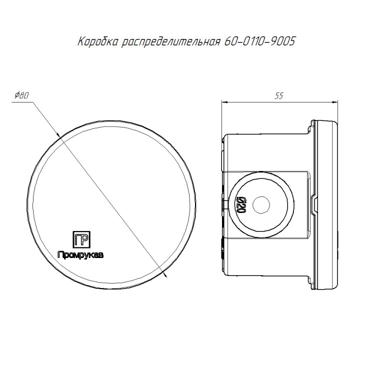 60-0110-9005 Коробка распределительная для прямого монтажа двухкомпонентная (HF) черная 70х50 (168шт/кор) Промрукав