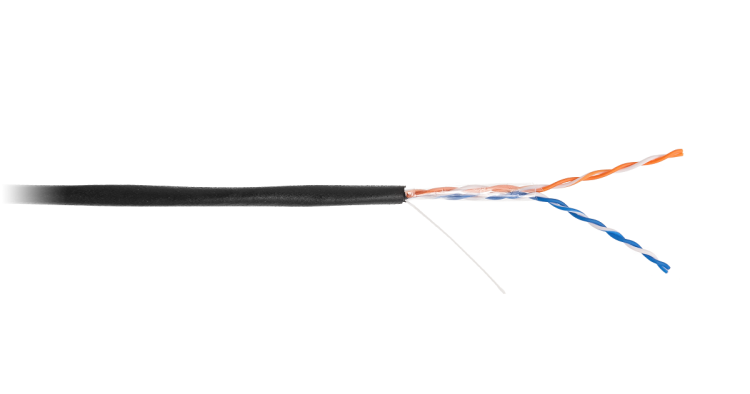 EC-UU002-5-PE-BK Кабель U/UTP 2 пары, Кат.5 (Класс D), BC (чистая медь), внешний, черный, 305м NETLAN