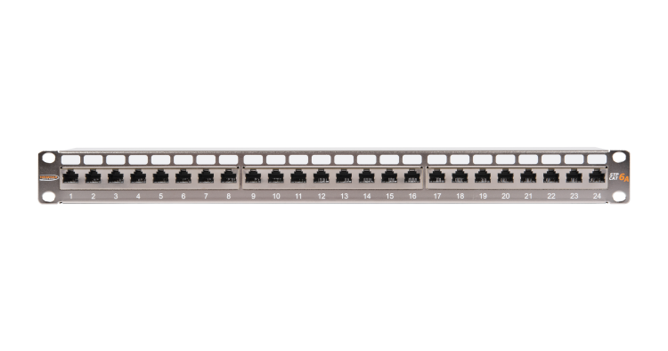 Коммутационная панель NIKOMAX 19", 1U, 24 порта, Кат.6a (Класс Ea), 500МГц, RJ45/8P8C, 110/KRONE, T568B, полный экран, с органайзером, металлик - гарантия: 5 лет расширенная / 25 лет системная