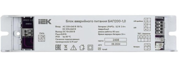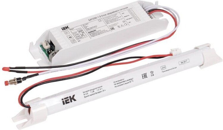 Блок аварийного питания (БАП) предназначен для обеспечения бесперебойного освещения помещений светодиодными светильниками в случае непредвиденного отключения сети 230В. БАП200 позволяет питать постоянным напряжением от 0 до 120В (регулируется DIP-переключателем) светодиодные модули различных конфигураций. Обязательным условием является наличие доступа к драйверу. Блок аварийного питания IEK состоит из электронного пускорегулирующего аппарата (конвертера), герметичной никель-кадмиевой аккумуляторной батареи, светодиодного индикатора наличия сети и подзарядки аккумулятора с кнопкой "ТЕСТ".