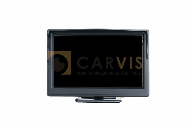 Автомобильный монитор в пластиковом корпусе, диагональ 5 дюймов, дисплей TN, разрешение 800?480, видеосистема PAL/NTSC (автоопределение), угол обзора по горизонтали/вертикали: 140°/120°, видеовход (разъемы): CVBS (Авиационный 4pin)/RCA, DC 8 - 35