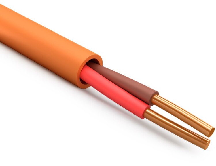Кабель с однопроволочными токопроводящими жилами из медной проволоки, с изоляцией из керамообразующей резины, парной скрутки, в оболочке из поливинилхлоридного пластиката пониженной пожароопасности с низким дымо- и газовыделением, неэкранированныйй