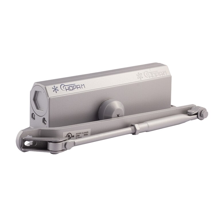 Модель 5S - доводчик дверной морозостойкий, предназначен для установки на входные металлические и другие тяжёлые двери (весом от 120 до 160 кг). Скорость закрывания двери при установке может быть отрегулирована в диапазонах от 180_ до 18_ и от 18_ до 0_ при помощи винтов на корпусе доводчика.