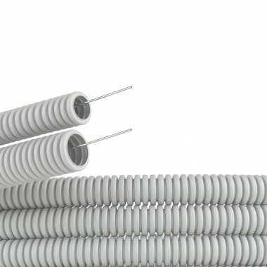 91925 Труба ПВХ гибкая гофр. д.25мм, лёгкая с протяжкой, 50м, цвет серый DKC