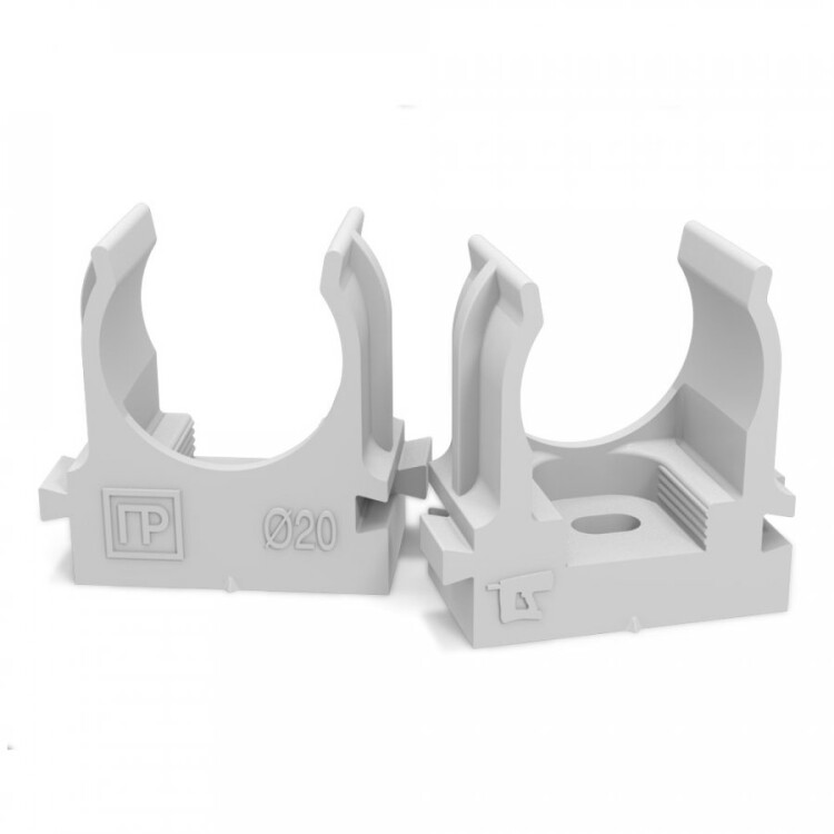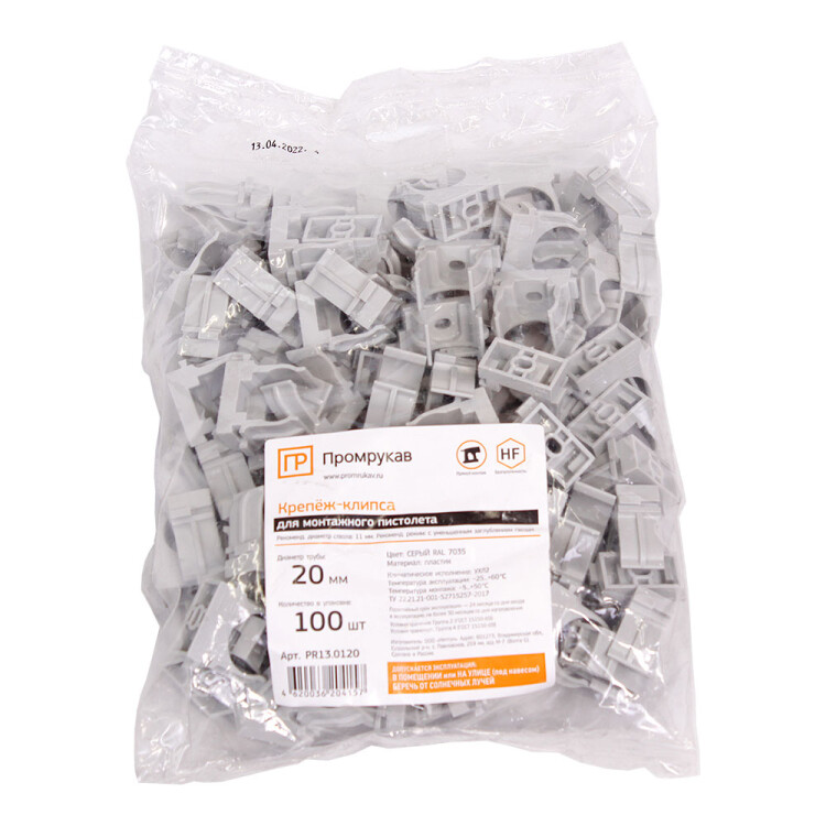 PR13.0120 Крепеж-клипса для труб для монтажного пистолета серая в п/э д20 (100шт/900шт уп/кор) Промрукав