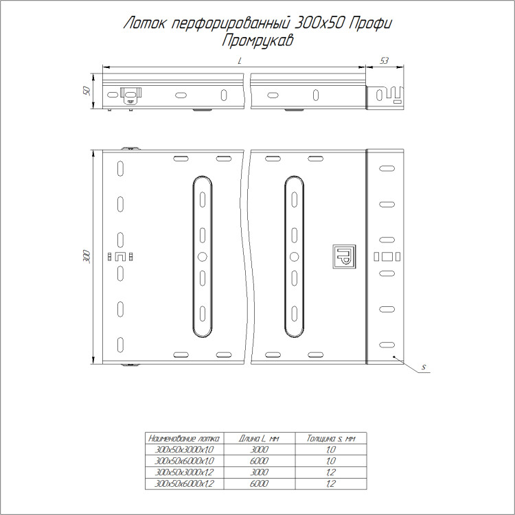 PR16.13563 Лоток перфорированный Профи INOX (AISI 316) 300х50x6000 (1,2 мм) (12 м/уп) Промрукав