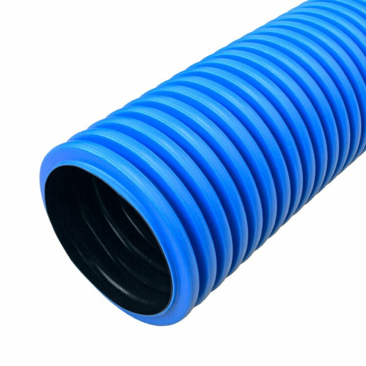 PR15.0076 Труба гофрированная двустенная ПНД жесткая тип 750 (SN16) синяя д110 6м (36м/уп) Промрукав