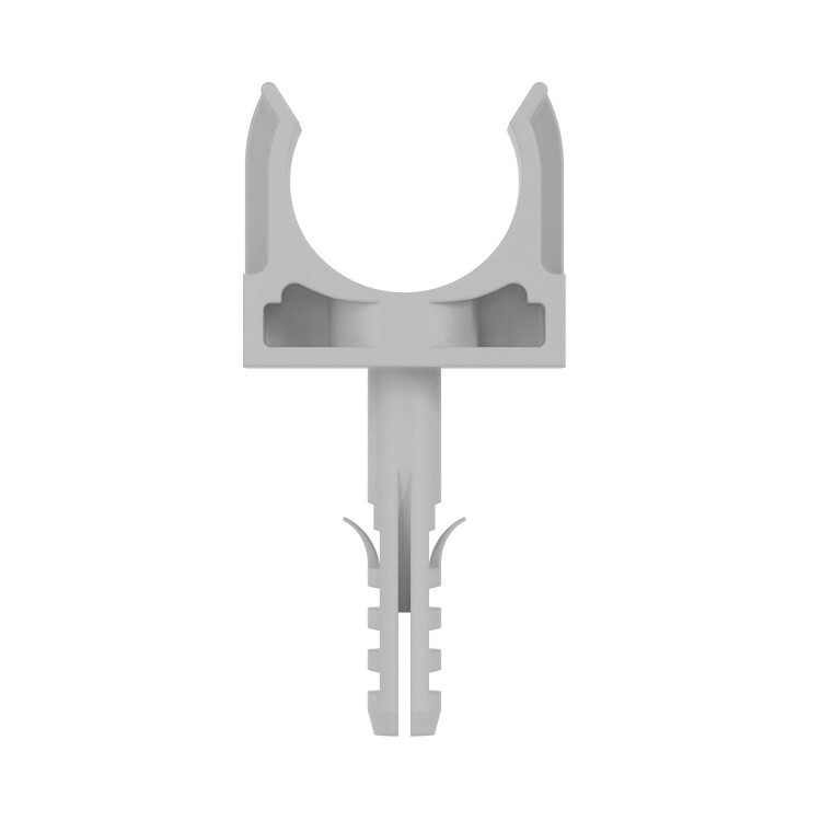 Держатель с защелкой и дюбелем предназначен для крепления жестких гладких и гофрированных труб к поверхности стен, потолков, полов и перегородок. Диаметр - 20 мм. Материал: полипропилен. Цвет серый RAL 7035. Элемент системы может эксплуатироваться при широком диапазоне температур: от -25°С до +60 °С.