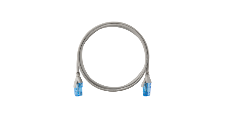Коммутационный шнур NIKOMAX Slim Line U/UTP 4 пары, Кат.6 (Класс E), 250МГц, 2хRJ45/8P8C, T568B, заливной, с защитой защелки, многожильный, BC (чистая медь), 28AWG (7х0,127мм), LSZH нг(А)-HFLTx, серый, 2м