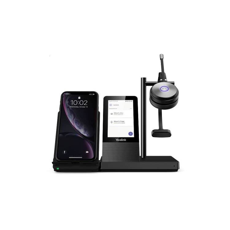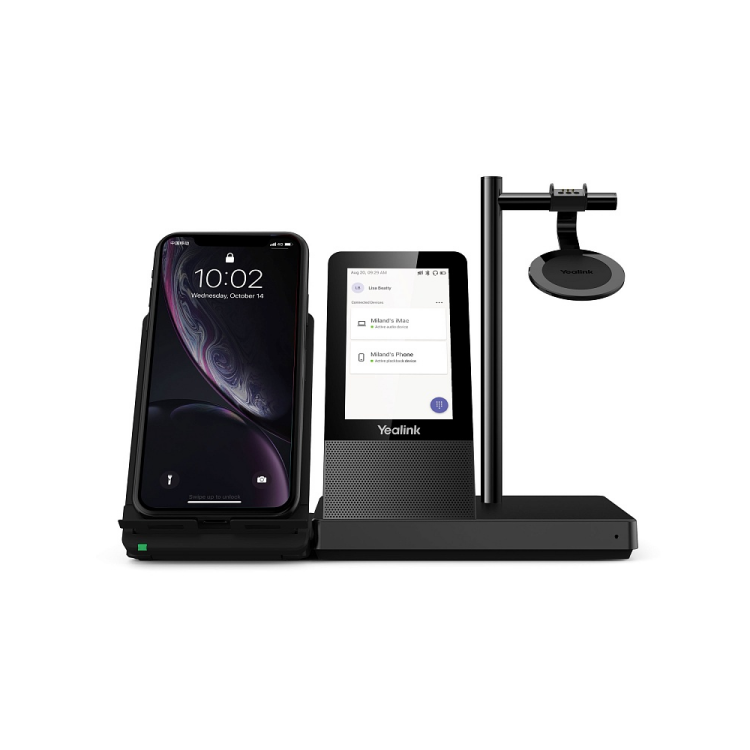 Базовая станция гарнитуры обладает сенсорным дисплеем 4"" с разрешением 480x800 пикселей, встроенным спикерфоном, беспроводной зарядной подставкой для смартфона (опционально).