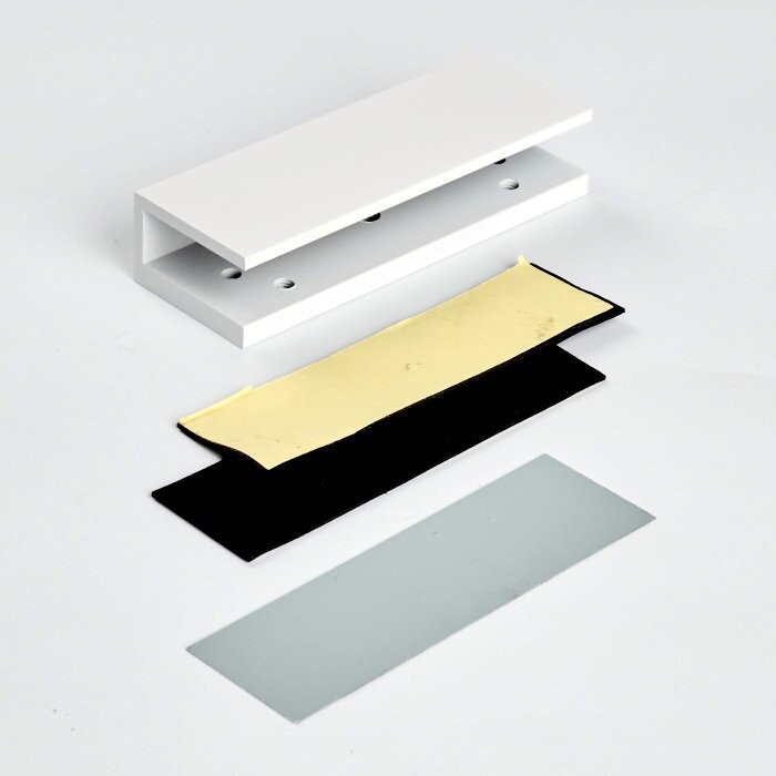 Кронштейн для замка, тип U, цвет белый U-адаптер для крепления на стеклянную дверь 8 - 15 мм якоря замка RL-EM180, цвет белый, 130х46х28 мм.