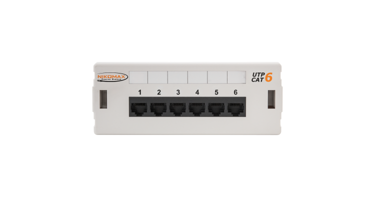 Коммутационная панель NIKOMAX настенная, 6 портов, Кат.6 (Класс E), 250МГц, RJ45/8P8C, 110, T568A/B, неэкранированная, светло-серая - гарантия: 5 лет расширенная / 25 лет системная