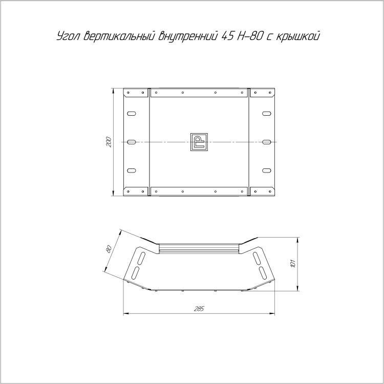 Угол вертикальный внутренний 45° с крышкой 200х80 Промрукав