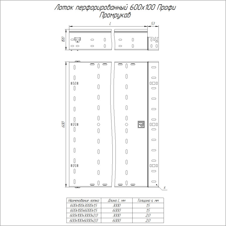 PR16.13613 Лоток перфорированный Профи INOX (AISI 316) 600х100x6000 (1,5 мм) (12 м/уп) Промрукав