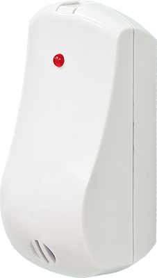 Извещатель разбития стекла радиоканальный, диапазон температур от -20 до +50°С, электропитание от батареи типа CR123А и резервного типа CR2032.