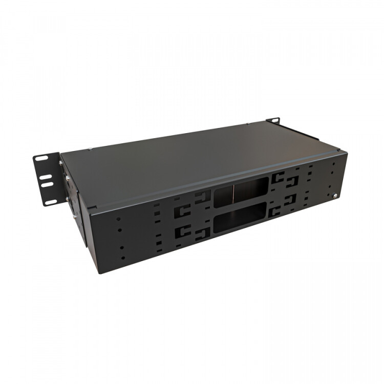 NTSS-RFOB-2U-64-SC/U-9-SP1.5G0AY-BL Кросс оптический 19"" укомплектованный 2U, 64 порта SC/UPC, 9/125 мкм (сплошная панель, сплайс-кассета 2шт, пигтейлы, КДЗС, адаптеры) черный RAL 9005 NTSS