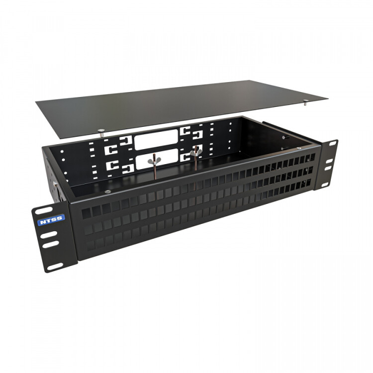 Кросс оптический распределительный стоечный NTSS предназначен для оконцовки оптического кабеля и коммутации с внешними устройствами через оптические адаптеры. Кросс оптический 19" предназначен для установки в шкафы или стойки и имеет специальные кронштейны для крепления кросса в 19-ти дюймовые направляющие. Кронштейны могут быть установлены на двух разных уровнях, для возможности установки кросса как заподлицо с направляющими шкафа так и немного утопленным. Лицевая сторона оптического кросса NTSS-RFOB изготавливается в двух видах конструктива - с отверстиями под адаптерные планки и со сплошной панелью. Тыльная сторона кросса имеет отверстия для ввода и крепления кабеля, для крепления центрального силового элемента. Для монтажа сплайс кассет в кроссе есть несъемные шпильки с гайками барашками. Кроссы выпускаются размерами от 1 до 4U и могут быть серого или черного цвета. Под заказ можно изготовить кроссы любого цвета.