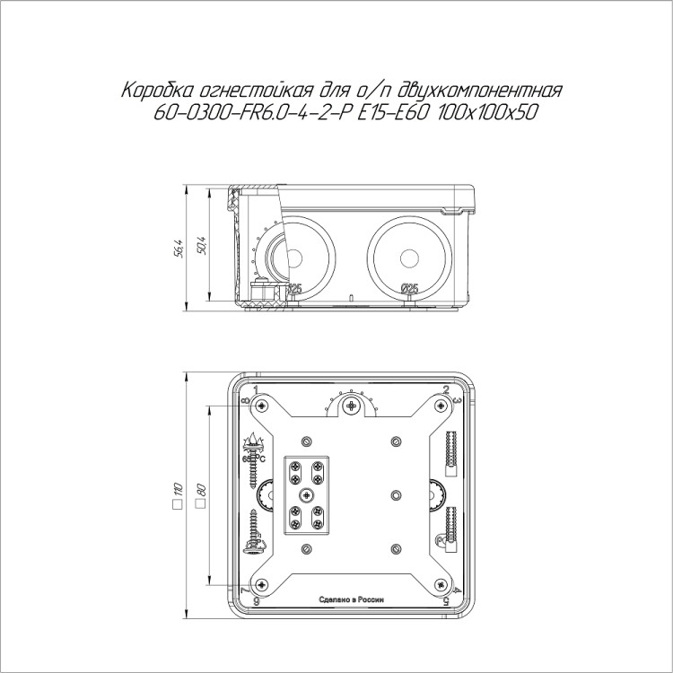 60-0300-7035-FR6.0-4-2-Р Коробка огнестойкая разветвительная для о/п двухкомпонентная Е15-Е60 RAL7035 100х100х50 Промрукав
