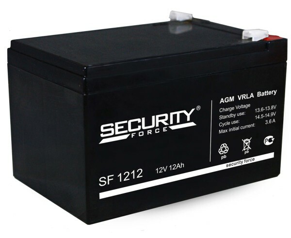 Стационарный свинцово-кислотный необслуживаемый аккумулятор Security Force изготовлен по технологии AGM. Технические характеристики: номинальное напряжение 12 В; срок службы 3-5 лет; номинальная емкость (25°С) 20 часовой разряд - 12 Ач; внутреннее сопротивление полностью заряженной батареи (25°С) - 30 мОм; саморазряд 3% емкости в месяц при 25°С; рабочий диапазон температур: разряд -15~50°C; заряд -10~50°C; хранение -20~50°C; Метод заряда: постоянным напряжением (25°С) - циклический режим (14,4 - 15,0 В); макс.зарядный ток 3,6 А; температурная компенсация -30 мВ/°С; буферный режим (13,50 - 13,80 В) - температурная компенсация -20 мВ/°С; габариты (±1мм): длина, мм 151; ширина, мм 98; высота, мм 95; полная высота, мм 101