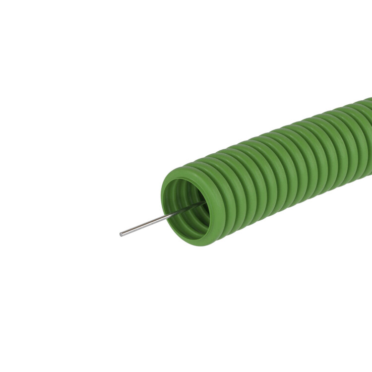 Гибкая гофрированная труба из ПВХ надежно защищает кабель от механических воздействий. Используется для прокладки электрического, компьютерного телефонного кабелей. Труба этого типа прокладывается в стенных штробах, в пустотах фальш-потолков и фальш-стен, в стяжке полов или под фальш-полами. Проволочная протяжка облегчает прокладку кабеля в трубе.